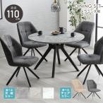 ダイニングセット 幅110cm 丸テーブル 5点セット 4人 円形 円卓 メラミン天板 石調 ストーン柄 クロス脚 回転チェア ファブリック アイアン 北欧 高級感
