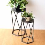 花台 フラワースタンド アイアン 大小2個セット おしゃれ スリム サイドテーブル 観葉植物 花置き台 アイアン六角スタンド 2サイズセット