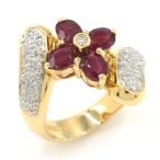 1.75ct天然ルビーリング 12号 K18YG 0.16ct天然ダイヤモンド フラワーモチーフ 花 重なり合う イエローゴールド 地金8.6g 中古 送料無料