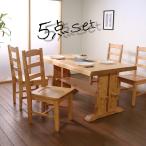 (タイムセール中) ダイニングテーブルセット 幅140cm 4人用 5点セット チェア4脚 天然木