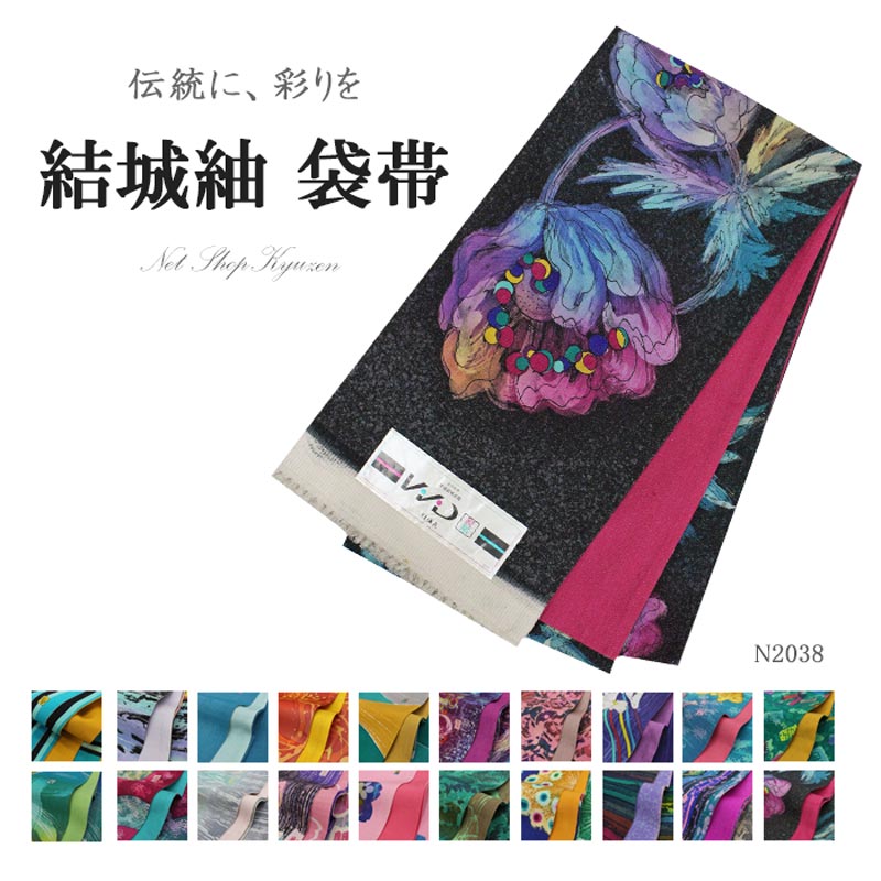 【在庫処分】結城紬袋帯 おび 振袖帯 単品 お洒落帯 ゆうきつむぎ 正絹 ブランド帯 紫 ピンク 黒 緑 青 黄色 ラメ 派手 踊り 日本製リメイク帯 壁掛け テーブルランナー 成人式 パーティー 結婚式