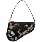 クリスチャンディオール Christian Dior サドルバッグ ワンショルダー 刺 アクセサリーポーチ ハンドバッグ キャンバス ブラック レディース 中古