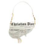 クリスチャンディオール Christian Dior ガリアーノ期 レザー ニュースペーパー プリント 総柄 新聞柄 ハンドバッグ サドル ホワイト ブラック ゴールド【中古】【正規品保証】