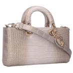 クリスチャンディオール Christian Dior レディ D-ジョイ ロゴチャーム付きクロコ 2WAYハンドバッグ(グレー)【103062】【BS99】【小物】【中古】bb443#rinkan*A