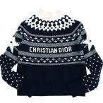 【美品】ディオール Dior ロゴニット セーター ウール カシミヤ ホワイト ネイビー レディース #34 144S60AM134 5s7486m【中古】