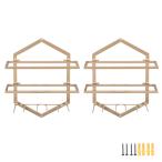 uxcell 壁掛けワインラ ック 金属製 吊り下げ式ワインボトルホルダー ワインボトルディスプレイ 壁掛け収納棚 家庭用 キッチン 居間用 金色 2