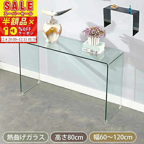 [半額品]★更に【10%OFFクーポン配布】コンソールテーブル ガラス 玄関テーブル おしゃれ ディスプレイテーブル ガラステーブル スリム 韓国風 サイドテーブル 60cm カウンターテーブル 80cm ドレッサー 100cm 120cm 飾り台 シンプル 透明 ブラック 玄関収納