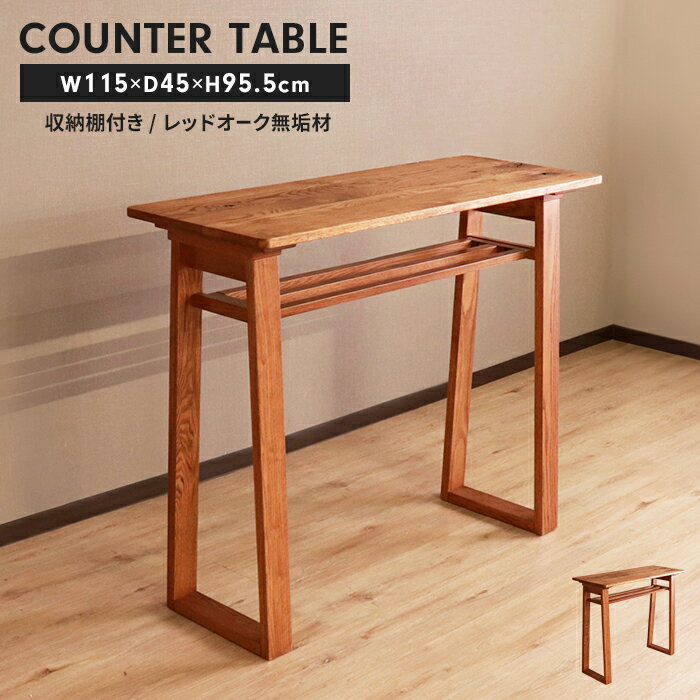 【楽天スーパーSALE10%OFF】カウンターテーブル 幅115 奥行45 高さ95.5 ハイテーブル 木製 テーブル 単品 作業台 コンソールテーブル ディスプレイ 収納棚付き 天然木 おしゃれ 北欧 和モダン