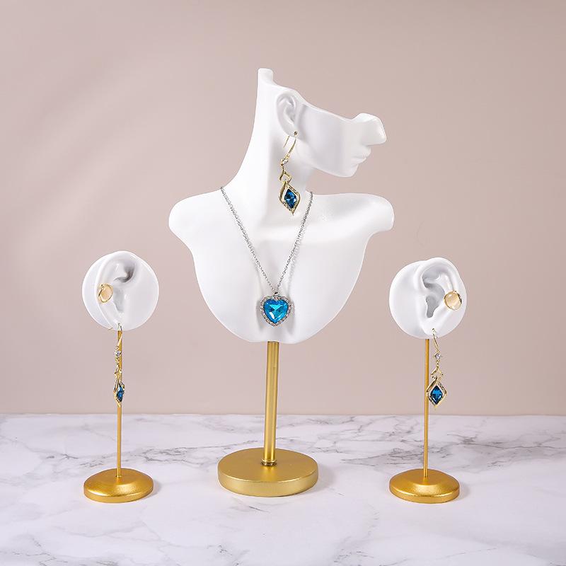展示台 ピアス 店舗用 什器 ダブルホール イヤリング 樹脂製 ペンダント 黒 ジュエリーディスプレイ カウンター 金属ベース