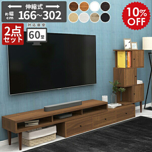 テレビ台 ラック キャビネット 棚 扉付き 伸縮 テレビボード 扉付き収納 扉 リビングボード 日本製 テレビラック ディスプレイラック オーク リビング収納 ホワイト 完成品 ローボード サイドボード 収納 北欧 おしゃれ 扉付き棚 木製 【2点セットT-003/1500】 ☆