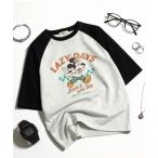 tシャツ 2026SS Disney/ディズニー ミッキー フロント/バックプリント ラグラン5分袖Tシャツ レディース