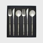 【純正リボン掛け】 クチポールゴア ホワイト×シルバー ディナー6本セット箱付き (ディナーナイフ、テーブルスプーン、ディナーフォーク) cutipol GOA ギフト