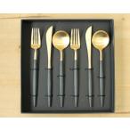 クチポール ゴア ブラックマットゴールド ディナー6点セット ナイフ フォーク スプーン ギフトボックス入り Cutipol GOA セール