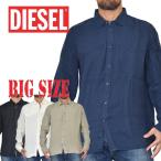 SALE 大きいサイズ メンズ DIESEL ディーゼル カジュアル リネンシャツ 薄手 長袖シャツ 黒 ネイビー 白 カーキ S-PLAN-A 麻 リゾート XXL