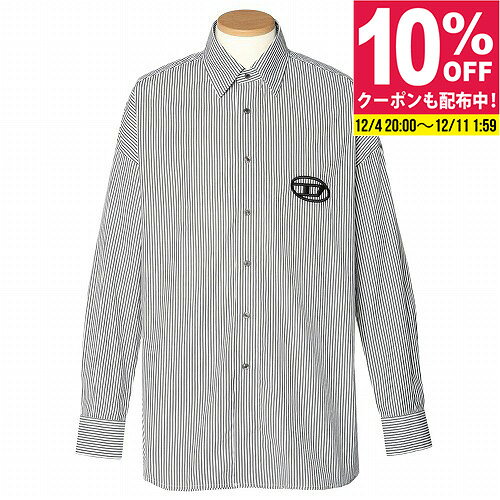 【10%OFF!12/4 20時〜】ディーゼル 長袖シャツ メンズ A10683 0DNAN 9XX DIESEL シャツ 長袖 ストライプ 黒 刺繍ロゴ ビジネス 仕事用 おしゃれ カジュアル