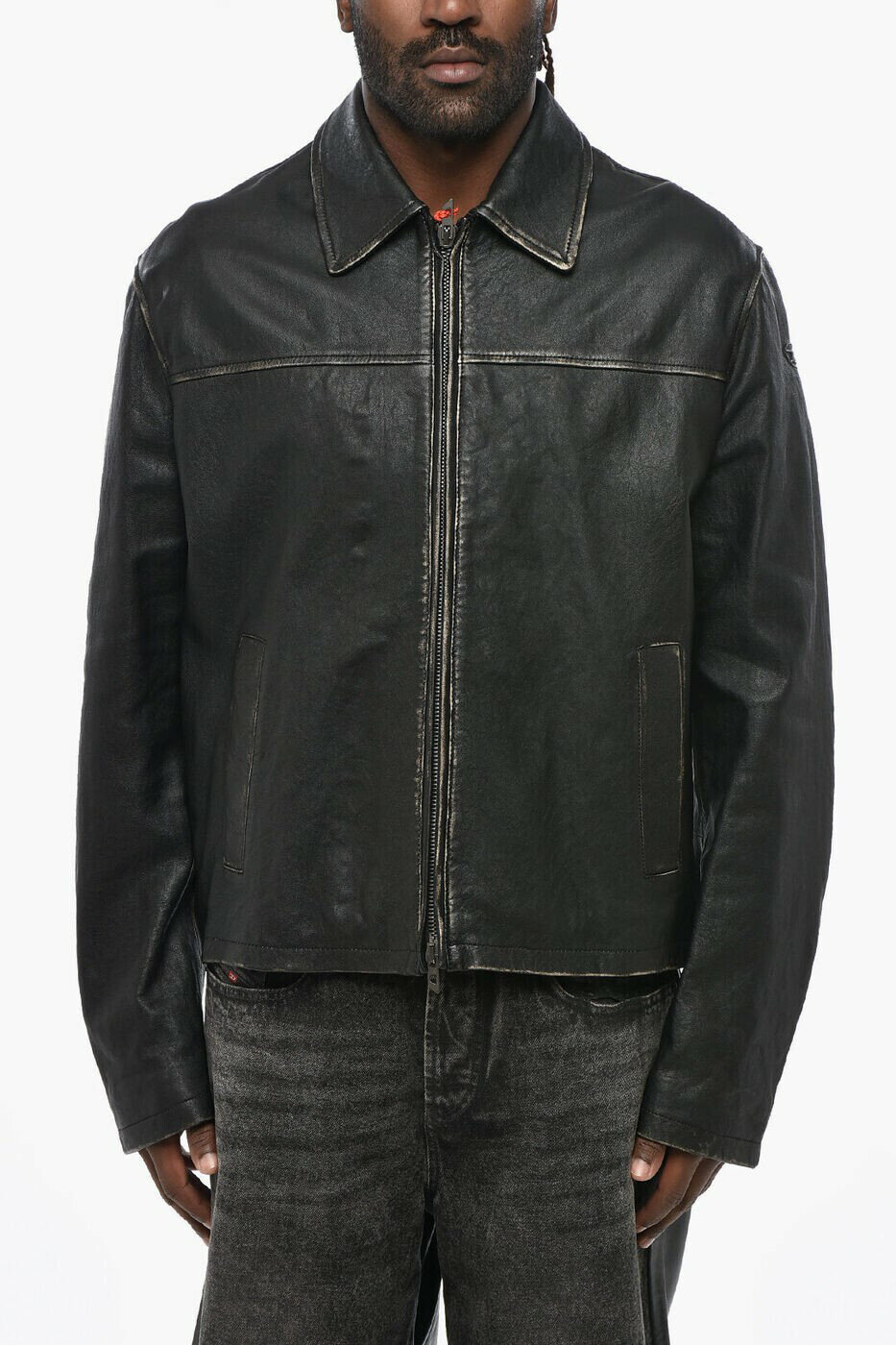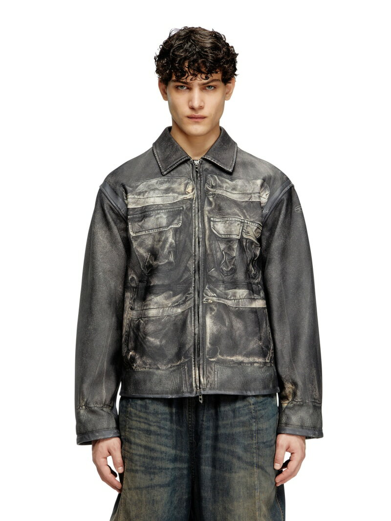 DIESEL メンズ レザージャケット L-MAYER ディーゼル ジャケット・アウター ブルゾン・ジャンパー ブラック【送料無料】