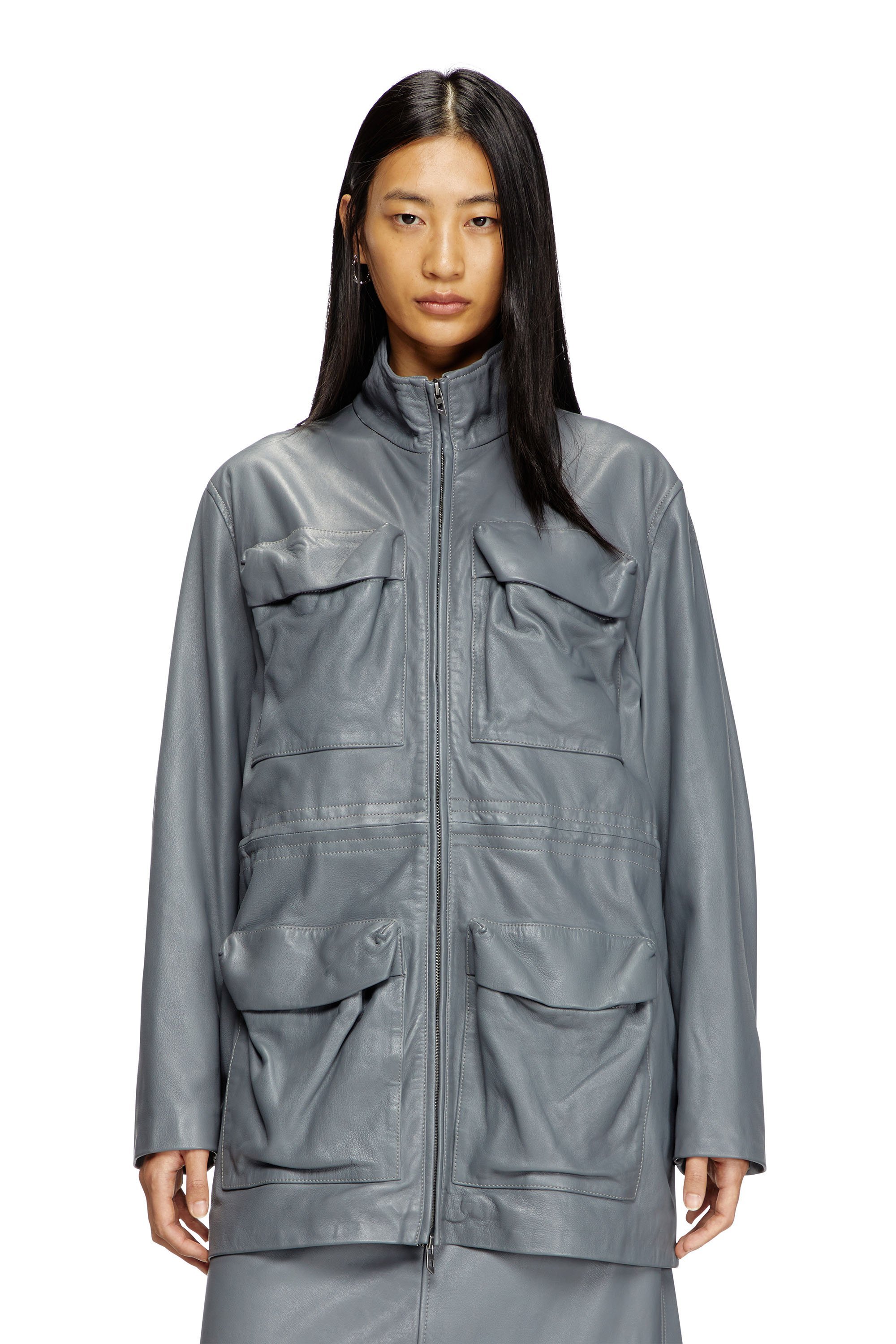 DIESEL ウィメンズ レザージャケット L-WEN ディーゼル ジャケット・アウター ブルゾン・ジャンパー グレー【送料無料】