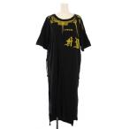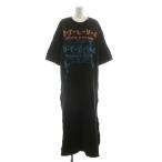 ディーゼル DIESEL ワンピース ロング 半袖 スウェット プリント ロゴ サイドスリット XXS 黒 ブラック /AN27 レディース