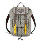 GUCCI グッチ バックパックベージュ×ダークブラウンダブルレザーハンドル イエローレザートリムスプリームキャンバスGG柄デイバッグ リュックサックタイガー 8858BEDBR GGプラスコーティングマイクロファイバーファブリック