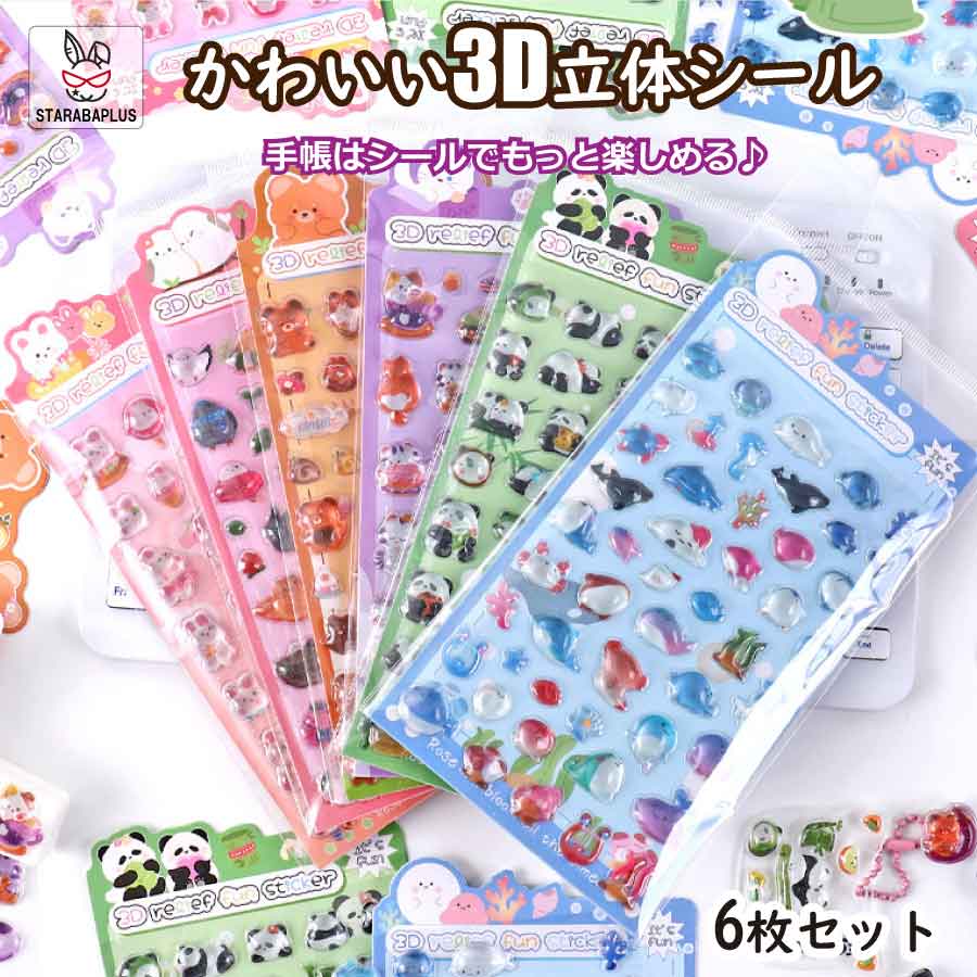 【期間限定15%OFFクーポン付き】【6枚セット】 3D立体シールセット ボンボンシール キャラクター風 ボンボンシール デコシール ドロップシール 日記帳用 交換 DIY飾り 手帳 シール交換 文具 動物 透明 かわいいプレゼント 誕生日