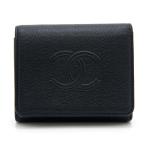 シャネル CHANEL 三つ折り財布 ウォレット キャビアスキン ココマーク ブラック シルバー金具 イタリア製 ミニ財布 中古 良品