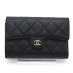 シャネル CHANEL 三つ折り財布 マトラッセ ミディアム フラップウォレット ココマーク キャビアスキン ブラック イタリア製 ABランク中古 良品