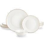 【並行輸入品】MALACASA ボーンチャイナ食器セット 12ピース プレートとボウルセット ゴールドの縁付き 4人用 傷つきにくいディナープレ
