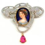 ブローチ エマーユジュエリー トルマリン ダイヤモンド K18(18金ゴールド) エナメル七宝 K14WG PT900 EMAUX