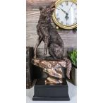 Ebros Gift 素朴な森林 遠吠えするアルファウルフ像 電気メッキブロンズ仕上げ トロフィーベース キャビン ロッジ オオカミ デスクトップシェルフ 装飾置物