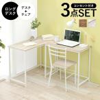 (タイムセール中) デスクチェアセット デスク・チェア・ロングデスク l字 3点セット コンセント付き コンパクト