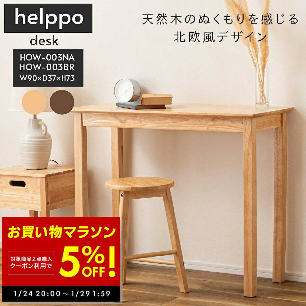【2点購入5%OFFクーポン! 〜1/29 1:59 】天然木 デスク コンソールテーブル テーブル 机 お洒落 小物置き 棚 ドレッサー 台 天然木 シンプル おしゃれ 北欧 韓国インテリア ナチュラル リビング 東谷 あずまや HOW-003NA HOW-003BR HOW-003 新生活