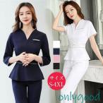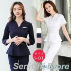 ユニフォーム エステ 制服 サロン 上下セット 通勤 化粧品販売 レディース 高級感 スパ SPA 受付 おしゃれ 半袖 ネイル 美容 歯科