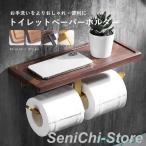 トイレットペーパーホルダー トイレットペーパー ペーパーホルダー トイレ トイレ用品 天然木 2連 防水 紙巻き器 収納 お手洗い 棚付き おしゃれ 飾り棚