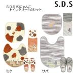 トイレタリー4点セット S.D.S 和にゃんこミケ/サバ 兼用フタカバー+トイレマット+スリッパ+PHカバー ベージュ/グレー 猫 ネコ