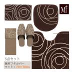 トイレマットセット 5点 トイレマット大判+兼用フタカバー+スリッパ+ペーパーホルダーカバー+ハンドタオル (M+home/ジェネシー) ブラウン センコー