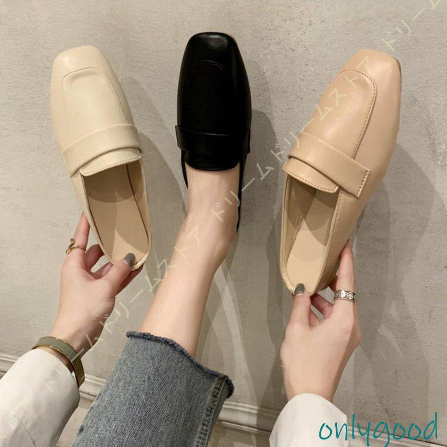 【期間限定10%OFF】ミュール サンダル ローヒール レディース スクエアトゥ ミュールサンダル 黒 ローファー フラット 前ふさがり つま先あり かかとなし レディース スリッパ