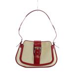 トッズ TOD'S ワンショルダーバッグ ハンド キャンバス レザー ロゴ ベージュ 赤 レッド ■GY18 /MQ レディース