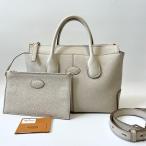 TOD’S トッズ DIバッグ スモール 2way ハンドバッグ ロゴ型押し レザー オフホワイト 白系 ポーチ付き 【中古】