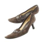 トッズ TOD'S パンプス ミドルヒール スクエアトゥ コインローファーデザイン スエード レザー 革 35.5 22.5cm 茶 ブラウン