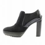 トッズ TOD'S ブーティ チャンキーヒール 切替 エナメル スエード 37.5 黒 ブラック /AN23 ■OF レディース