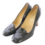 トッズ TOD'S パンプス ラウンドトゥ チャンキーヒール エナメル 36.5 黒 ブラック /BB レディース