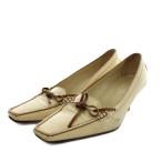 トッズ TOD'S パンプス ミドルヒール スクエアトゥ コインローファーデザイン スエード レザー 革 35.5 22.5cm 茶 ブラウン