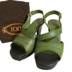 美品 TOD'S トッズ レザー ハイヒール ストラップ サンダル サイズ36 約23cm グリーン レディース 古着 中古