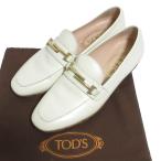 良品 TOD'S トッズ ダブルTモチーフ レザー ローファー シューズ 34.5 22.5cm相当 ホワイト ゴールド金具 レディース 古着 中古