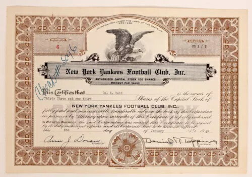 ニューヨーク・ヤンキース・フットボールクラブ(希少)トッピングとデル・ウェッブのサイン入り - 1947年