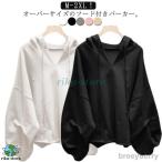 パーカー 長袖 レディース フード付き トップス トレーナー スウェットパーカー パフスリーブ プルーオーバー Vネック ビッグシルエット ゆったり