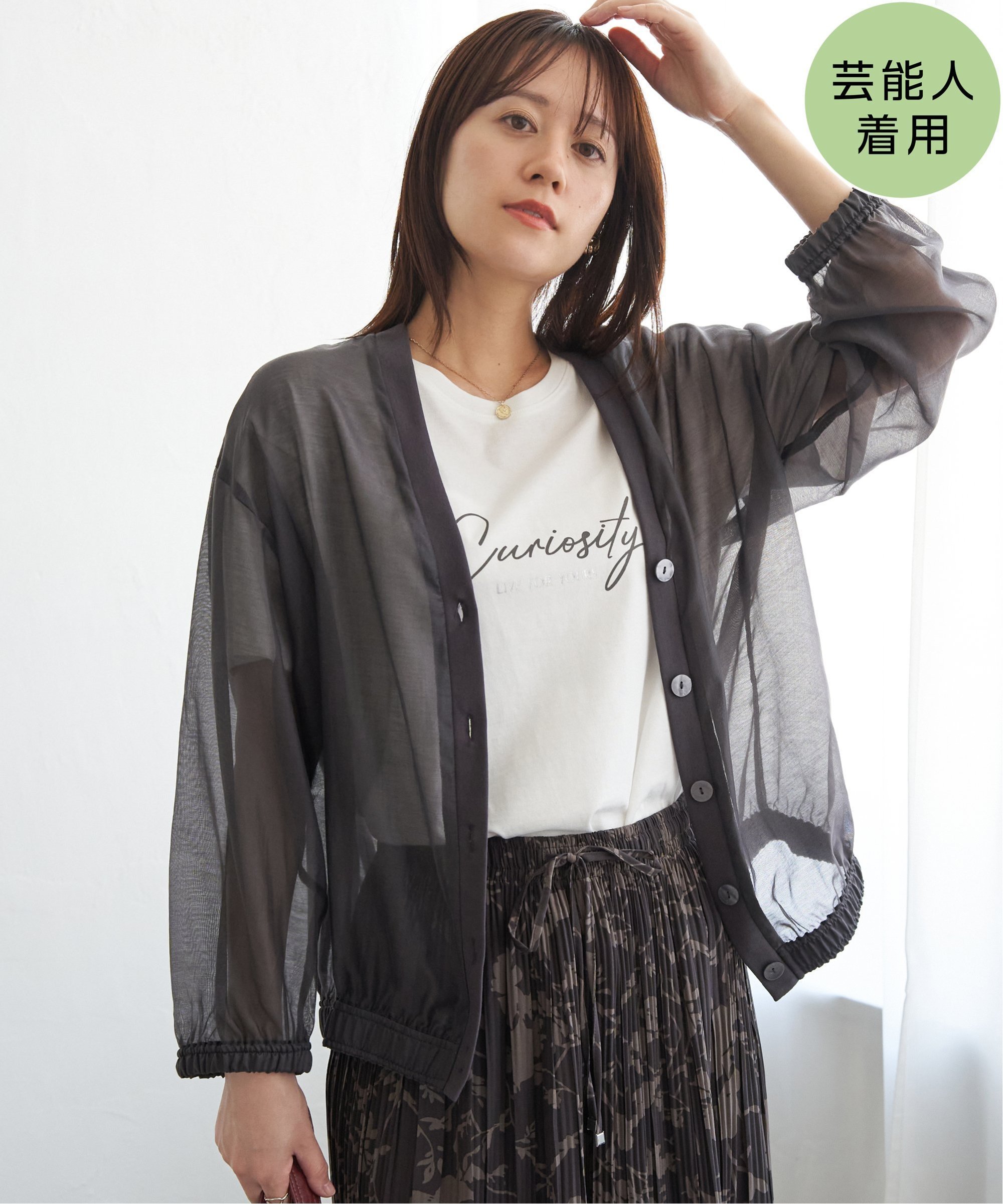 【SALE/30%OFF】ikka V襟シアーカーディガン イッカ トップス その他のトップス グレー ブラウン