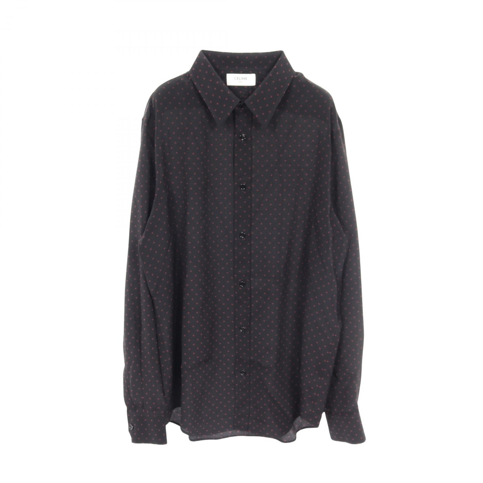 ◆全品5%OFFクーポン対象◆セリーヌ CELINE マイクロトリオンフプリント ルーズシャツ クレープ ド シーヌ 衣料品 トップス シルク メンズ ブラック系 / ボルドー系 【中古】