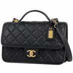 シャネル トップハンドルミニフラップバッグ ハンドバッグ AS2215 ブラック レディース 中古SA品