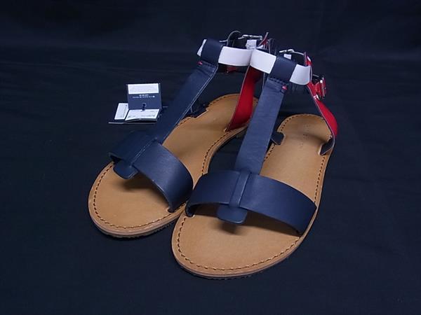 ■美品■ TOMMY HILFIGER トミーヒルフィガー レザー サンダル 表記サイズ 24cm 靴 シューズ ネイビー系×アイボリー系 FH7162